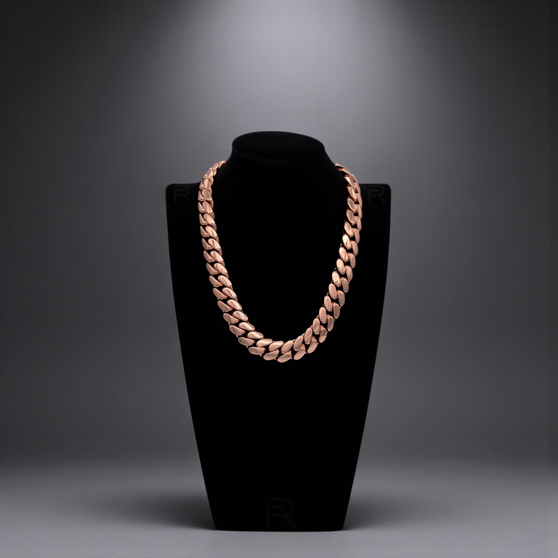 This Rose Gold Miami Cuban link is crafted for those who appreciate a more elevated expression of luxury — bold in presence, refined in tone.