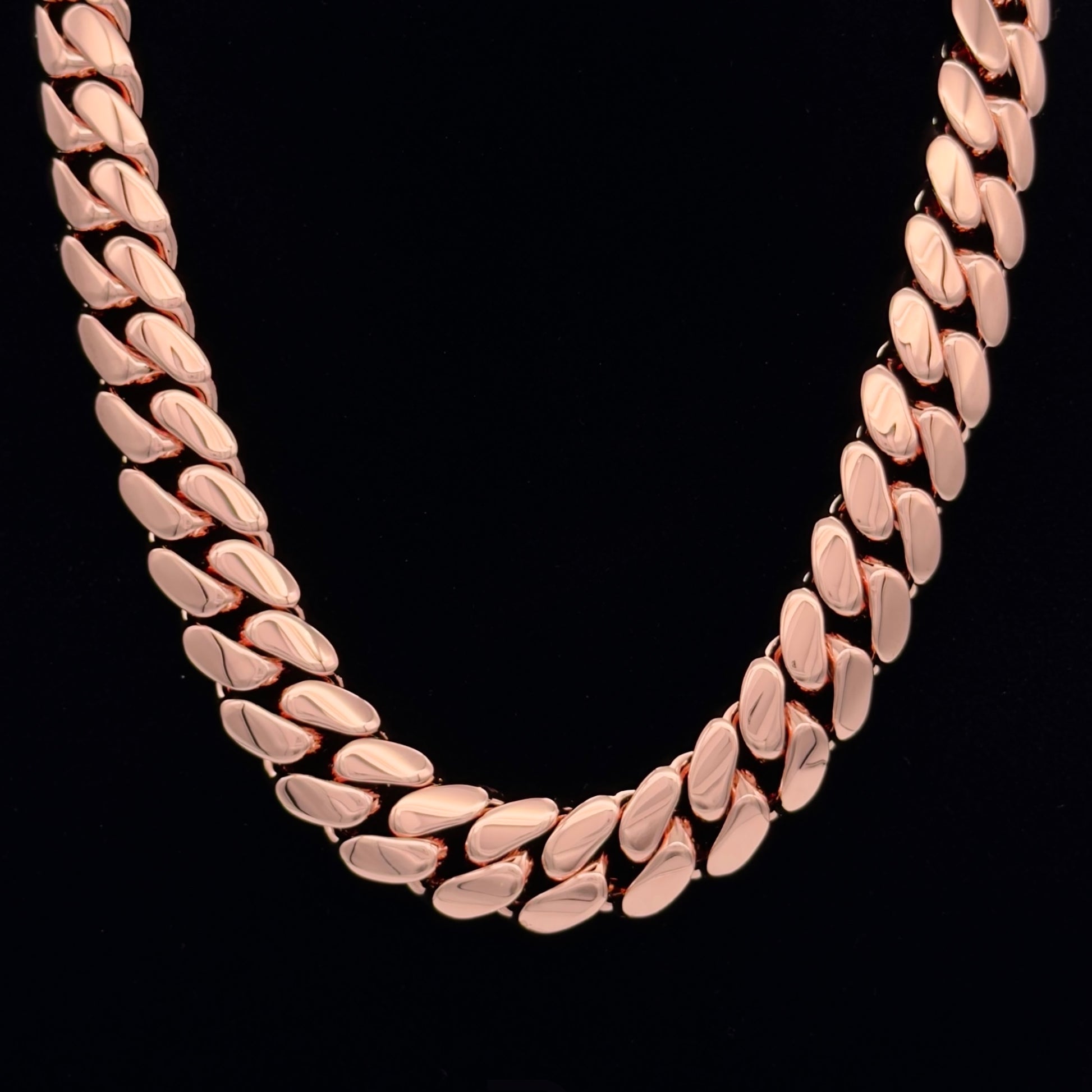 14k Rose Gold Miami Cuban Link Chain – Heavyweight, Triple Plated