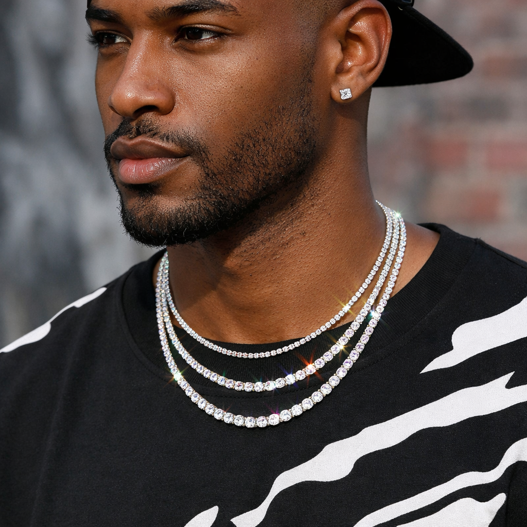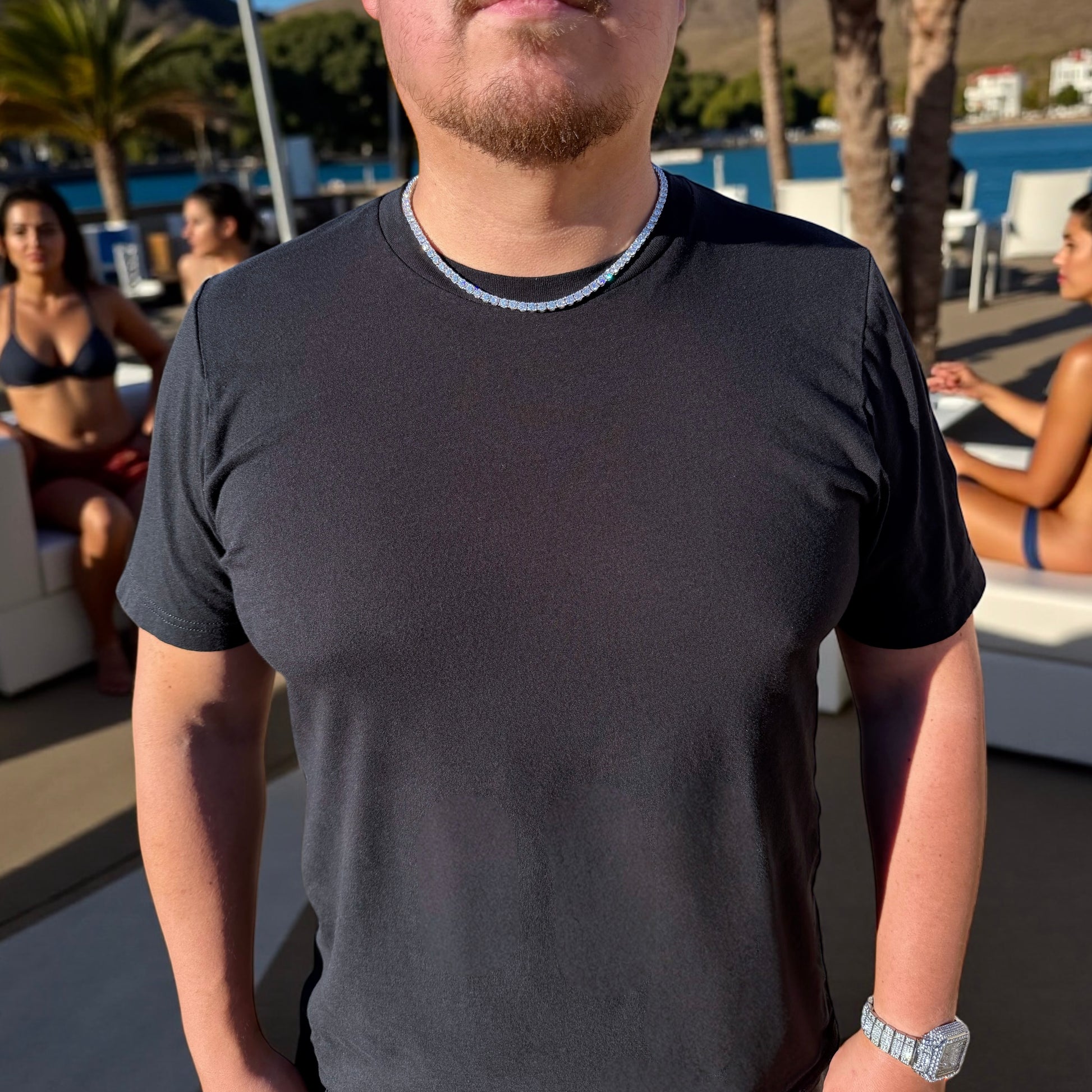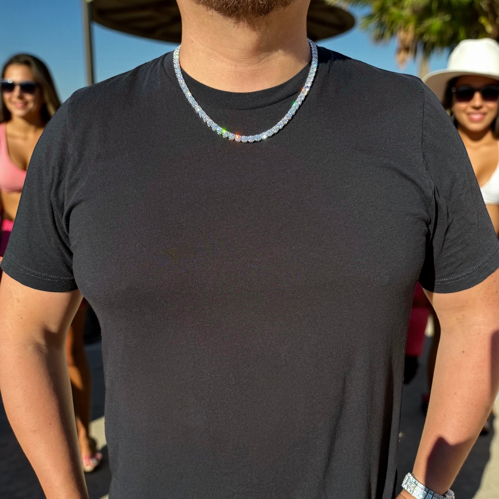 Designed in the iconic tennis necklace style, this piece features a seamless line of precision-cut stones that drape perfectly around the neck for a balanced, elegant look.